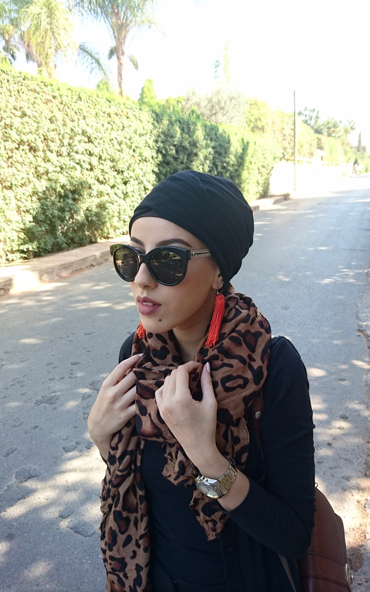 This week’s look is definitely one of my favourites! I’ve made these earrings a couple of weeks ago all whilst having this outfit in mind to wear it with. After similar earrings were sold out in H&M, I had to improvise and make my own because I needed a pair in my life. I absolutely love adding leaopard print to a black outfit for some colour, and pairing it with a pop of orange inspired by the gorgeous leaves in autumn was definitely a great idea.
